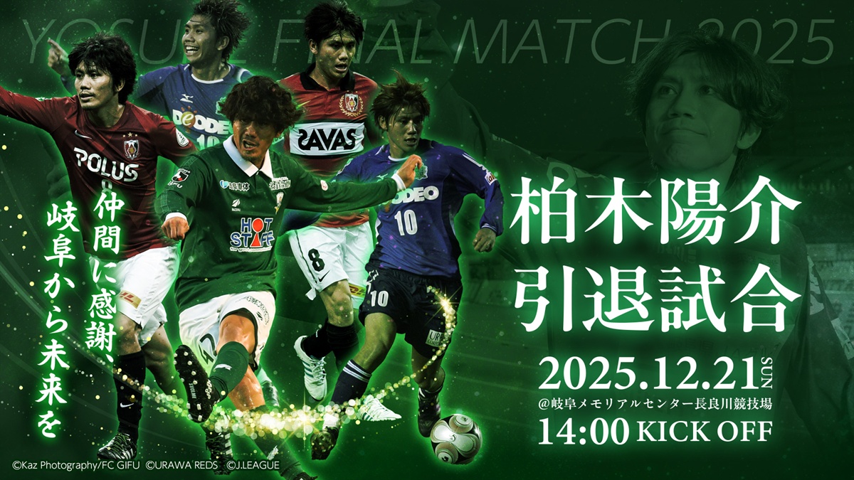 2023年シーズンで現役引退した元日本代表の柏木陽介選手の引退試合が、12月21日(日)14:00~長良川競技場で開催されます。